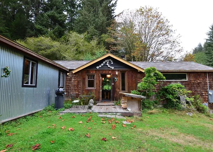 Die 1-Zimmer- Stone Lagoon Cabin verfügt über eine sonnige Terrasse mit Blick auf die Berge und ist 33 Autominuten vom Flughafen Arcata-Eureka entfernt gelegen.